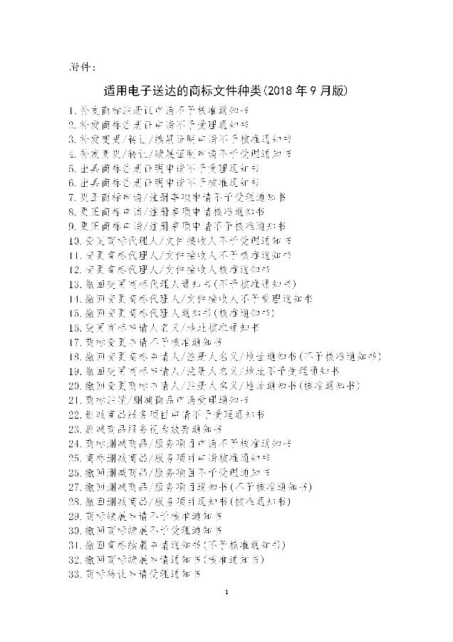 附件:適用電子送達(dá)的商標(biāo)文件種類(lèi)
