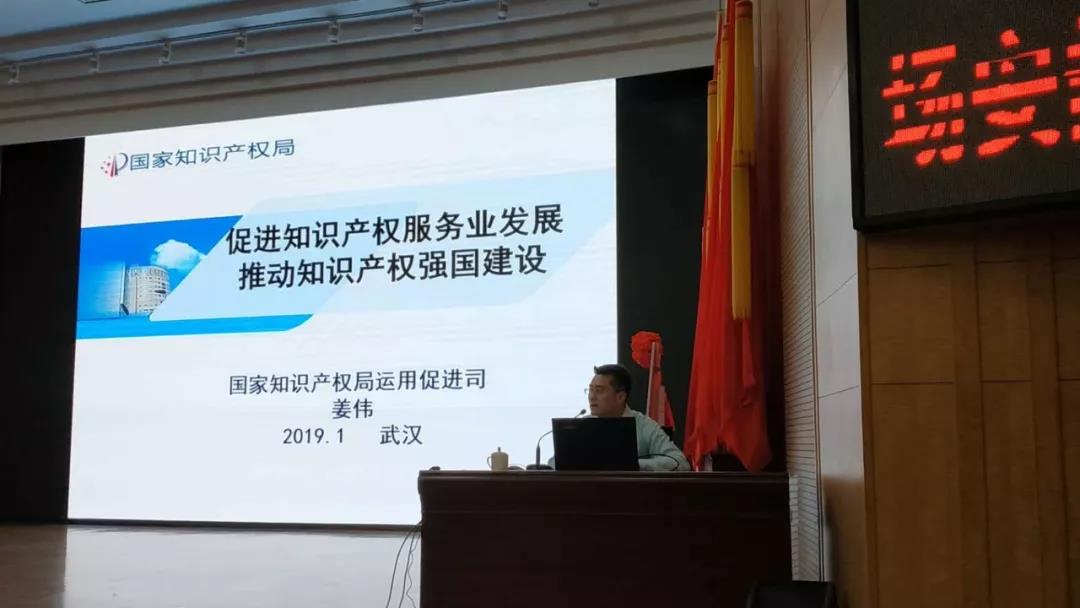 在成立大會結束之后,舉行專題培訓會議。姜偉處長受邀做題為《促進知識產(chǎn)權服務業(yè)發(fā)展,推動知識產(chǎn)權強國建設》的培訓講座。培訓會由協(xié)會秘書長、武漢科技大學知識產(chǎn)權研究所副所長蔡祖國教授主持。