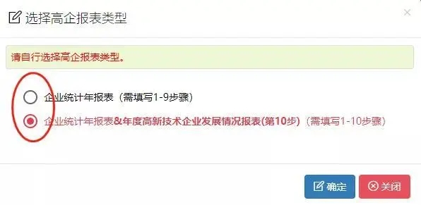 注意:以上兩個選項任選其一進行填報,區(qū)別在于第二個選項中第10步的數(shù)據(jù)直接同步到高新技術(shù)企業(yè)發(fā)展情況報表,建議財務(wù)報表數(shù)據(jù)已確定的企業(yè)直接進入第二個選項填報。