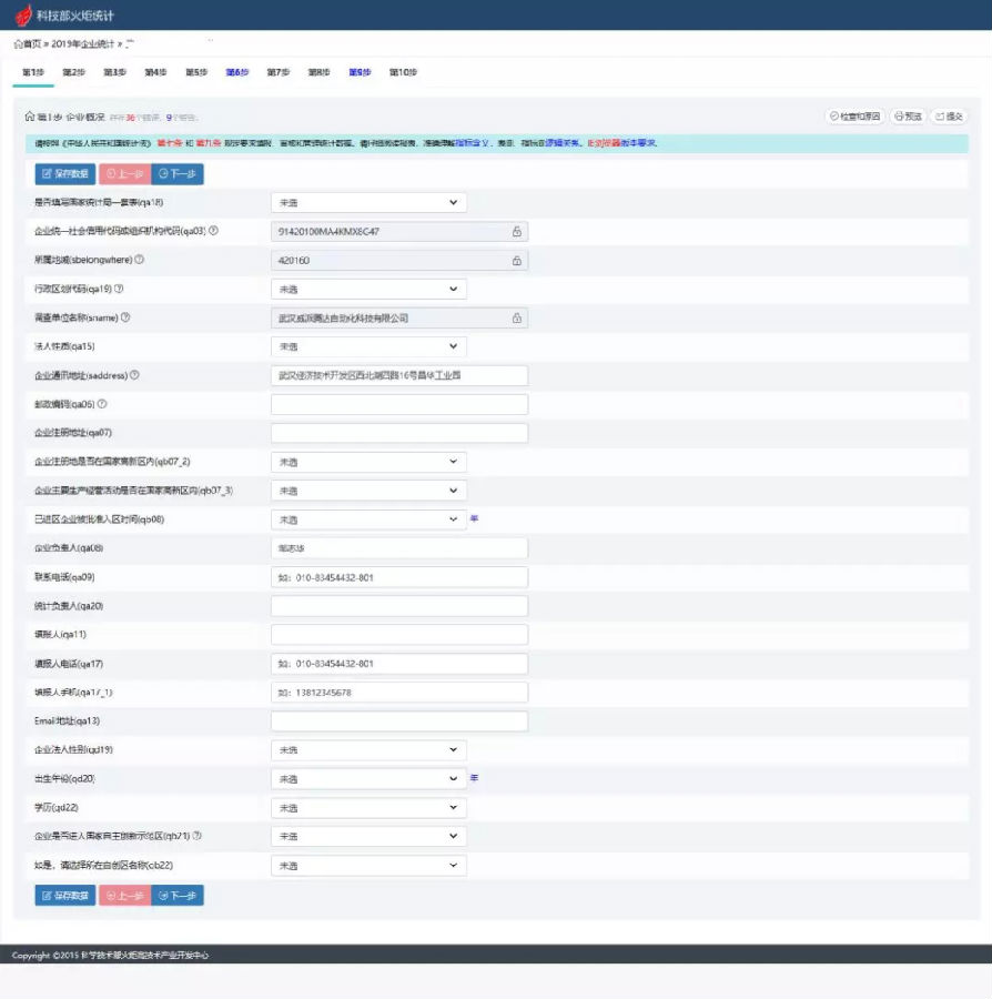 填寫每欄數(shù)據(jù),填完一步點擊『保存數(shù)據(jù)』-『下一步』;