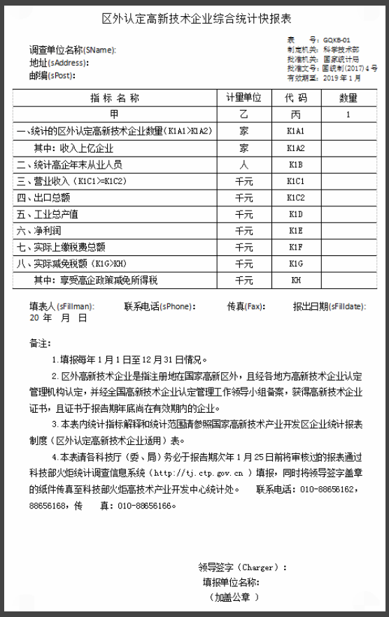 此表主要調(diào)查對象為認(rèn)定有效期內(nèi)的高新技術(shù)企業(yè),遞交截止時間一般為每年的3月15日。