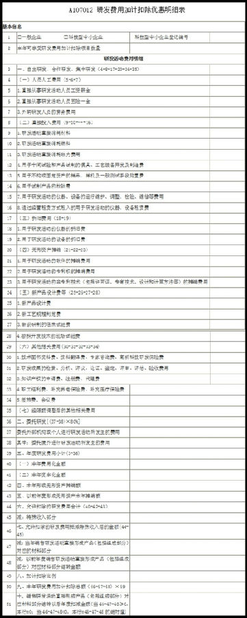 (2)A107012——研發(fā)費(fèi)用加計扣除優(yōu)惠明細(xì)表